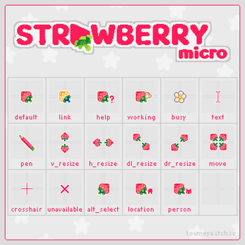 | Tags | cottagecore, cursor-pack, cursors, Cute, Pixel Art, strawberry |